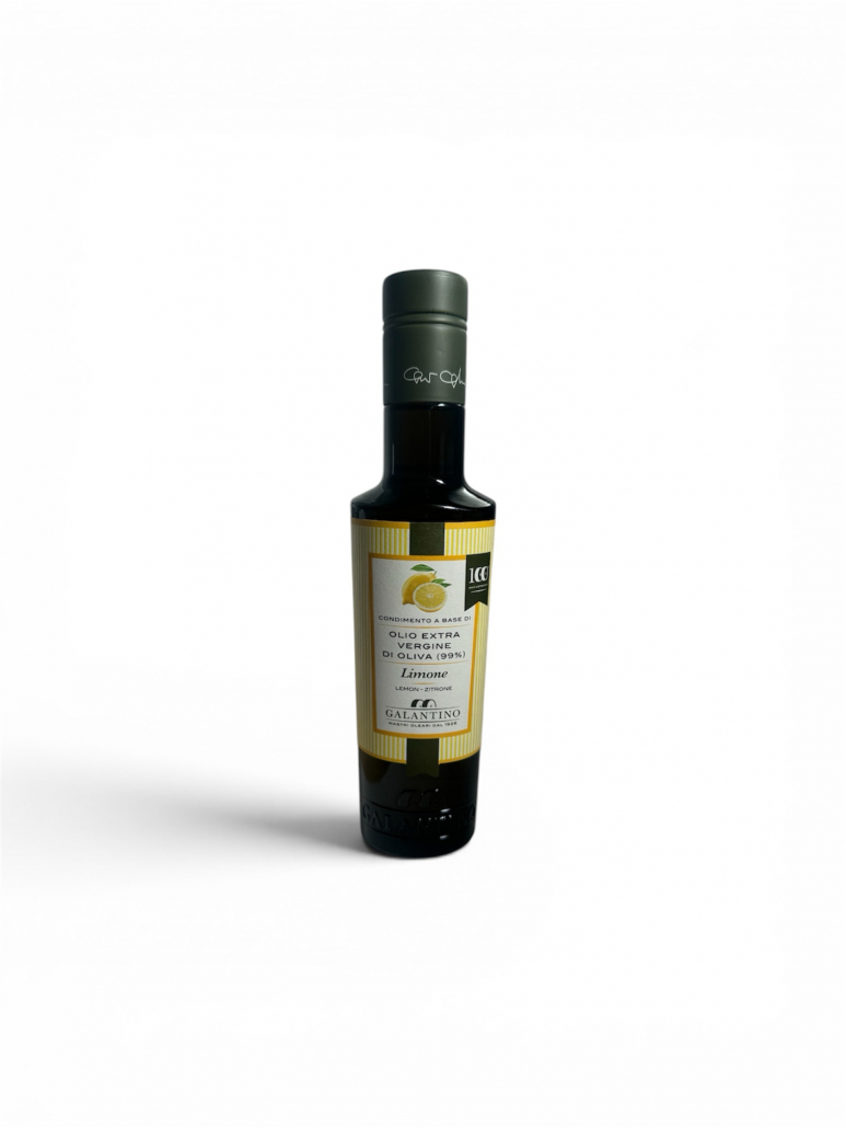 Das Olivenöl „Galantino Limone“ ist ein fein fruchtiges Olivenöl. Bei der Pressung werden ganze Zitronen zugegeben, sodass das das Öl nicht nur aromatisiert ist, sondern sowohl vom Saft als auch vom ätherischen Öl aus der Schale einen besonders fruchtigen Geschmack bekommt. Besonders gut geeignet ist dieses Öl für helle Fleisch oder Fischgerichte, Salaten und Gemüsegerichte.