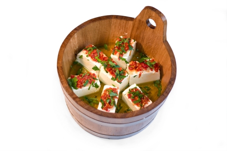 Cremiger Kuhmilchkäse mit Knoblauch und Öl, lecker im Salat oder auf Brot, in Kombination mit unserem Ciabatta ein schnelles Abendessen